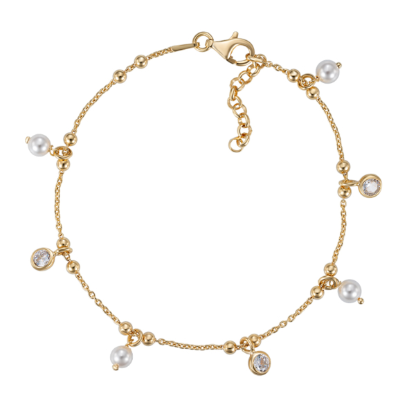Серебряный позолоченный браслет с жемчугом и фианитами. Артикул BRT 10570 G-B/20/4802