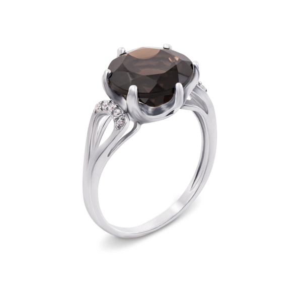 Серебряное кольцо с дымчатым кварцем и фианитами. Артикул 1729/9р
