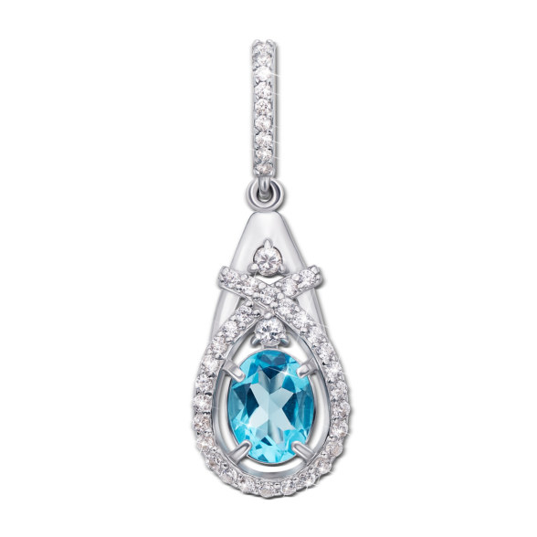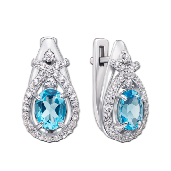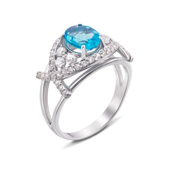 Серебряное кольцо с голубым кварцем и фианитами. Артикул 1703/9р