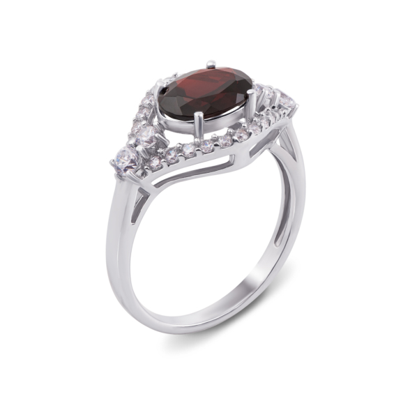 Серебряное кольцо с гранатом и фианитами. Артикул 1579/9р