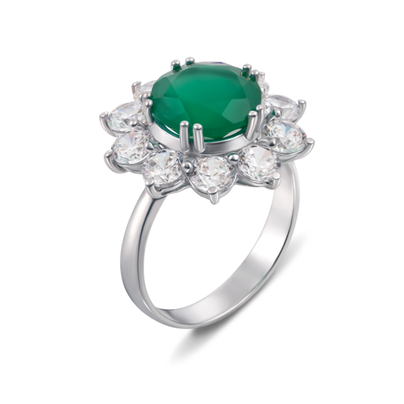 Серебряное кольцо с зеленым агатом и фианитами. Артикул 1622/9р