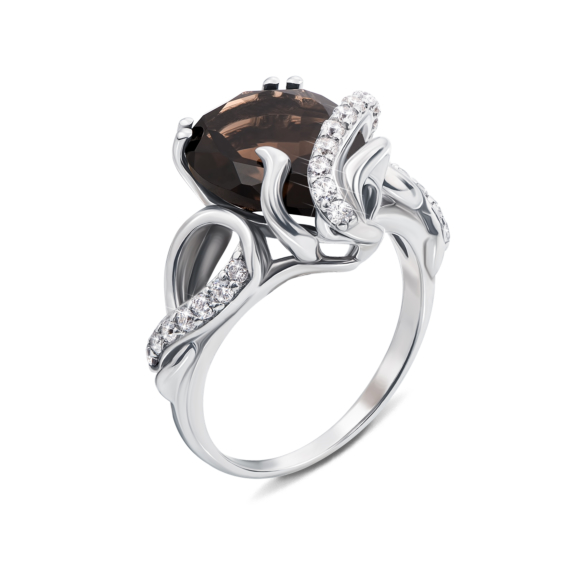 Серебряные серьги-подвески с дымчатым кварцем и фианитами. Артикул 2235/9р