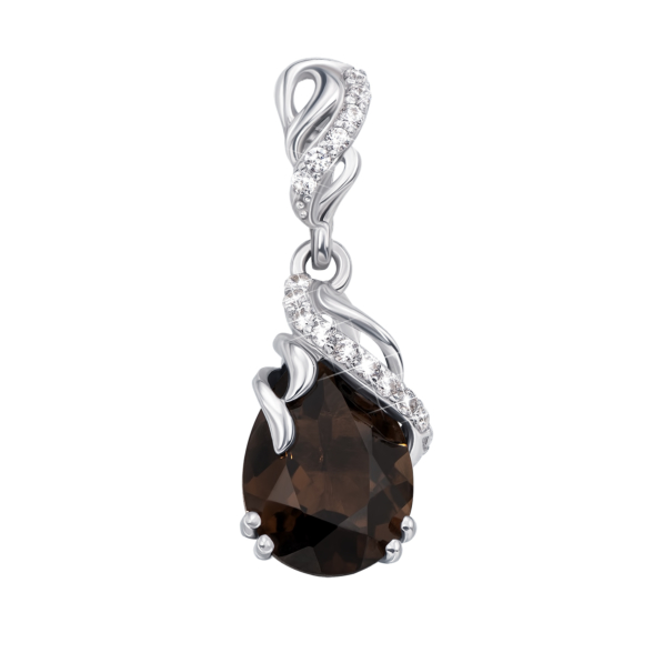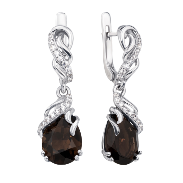 Серьги-подвески из серебра 925 пробы с дымчатым кварцем и фианитами