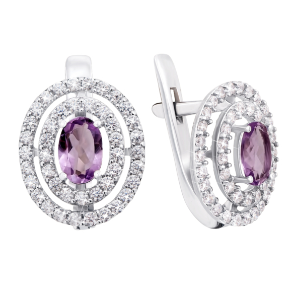Серьги из серебра 925 пробы с аметистом и фианитами