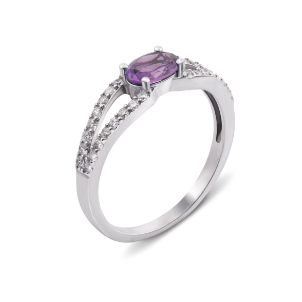Серебряные серьги с аметистом и фианитами. Артикул 2122/9р