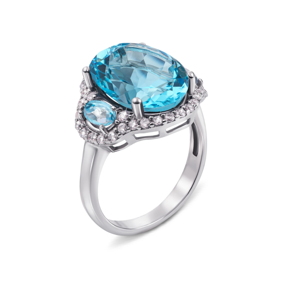 Серебряные серьги с голубым кварцем и фианитами. Артикул 2126/9р