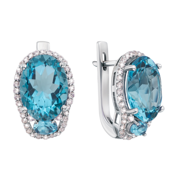 Серьги из серебра 925 пробы с голубым кварцем и фианитами