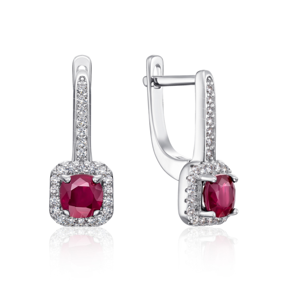 Серьги из серебра 925 пробы с красным рубином и фианитами.