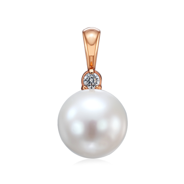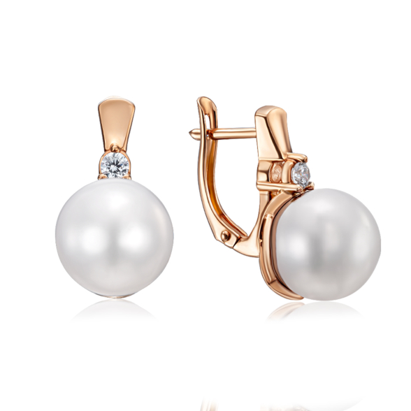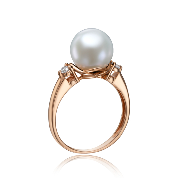 Кольцо из красного золота 585 пробы с жемчугом и фианитами