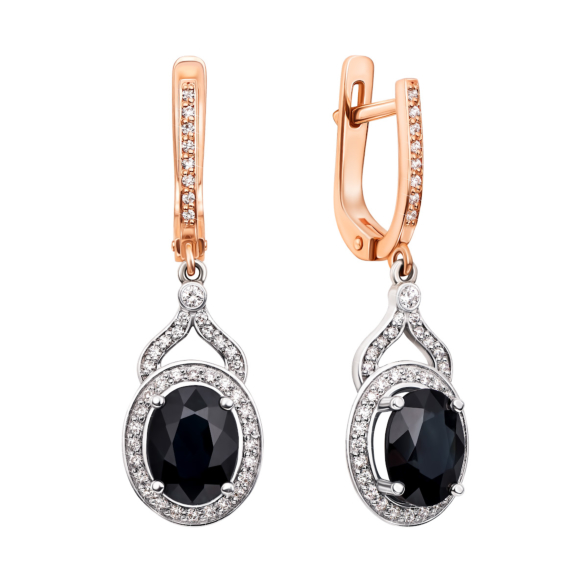 Серьги-подвески из красного золота 585 пробы с сапфирами и бриллиантами