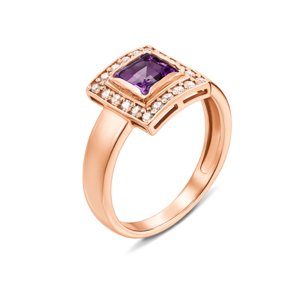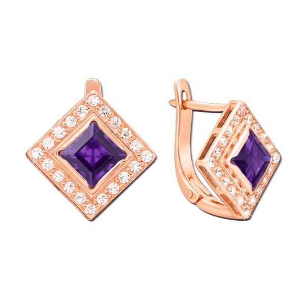 Серьги из красного золота 585 пробы с аметистом и фианитами