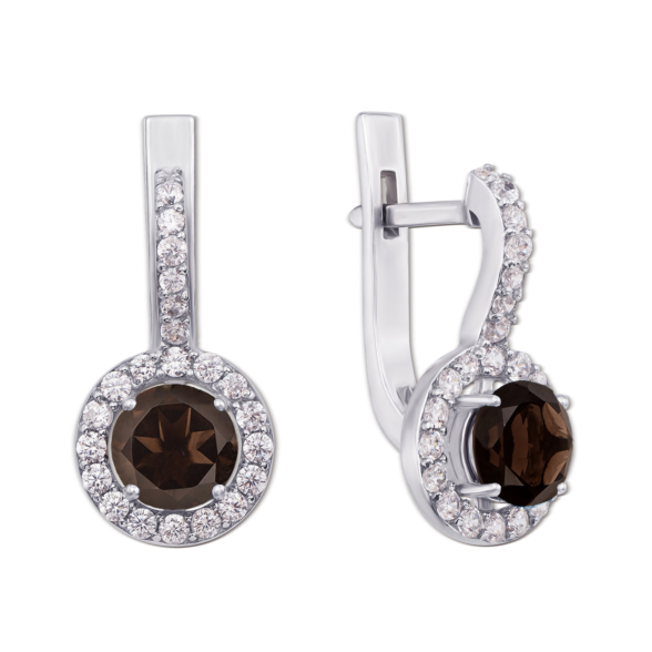 Срібна каблучка з димчастим кварцом і фіанітами. Артикул 1596/9р