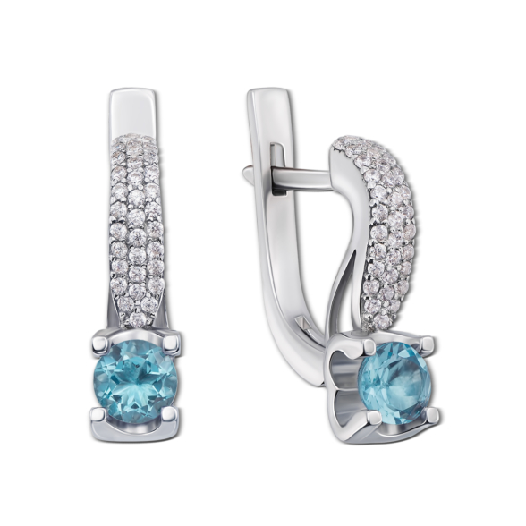 Каблучка зі срібла 925 проби, покрита родієм, - ніжна прикраса, яка підкорює з першого погляду. У центрі композиції - блакитний топаз круглої форми. Його прохолодний відтінок підкреслений холодним блиском металу і прозорим сяйвом фіанітів. Срібна каблучка з топазом і фіанітами припаде до смаку дівчатам і жінкам, які цінують вишукані ювелірні вироби. Така прикраса - прекрасний подарунок для коханої.