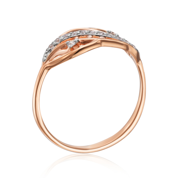 Підвіска з червоного золота виконана у формі листочка, декорованого розсипом фіанітів. Витончений ювелірний виріб найкраще носити на тонкому золотому ланцюжку, акцентуючи увагу на зоні декольте. Прозорі, немов краплі роси, сяючі камені, що прикрашають підвіску, відмінно відтіняють тепло червоного золота. Невелика золота підвіска з фіанітами виглядає дуже презентабельно і стане гарним подарунком для жінки до будь-якого свята.