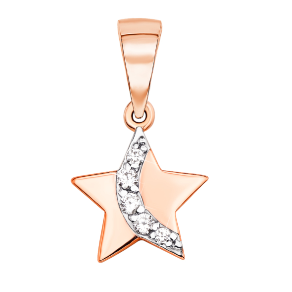 Підвіска «Зірка» з червоного золота 585 проби з фіанітами