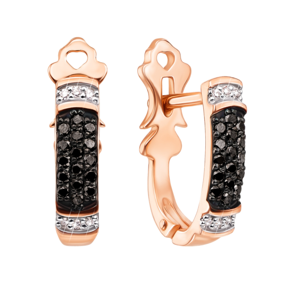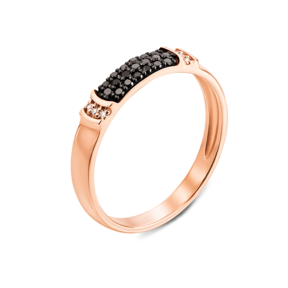 Каблучка з червоного золота 585 проби з чорними і білими діамантами