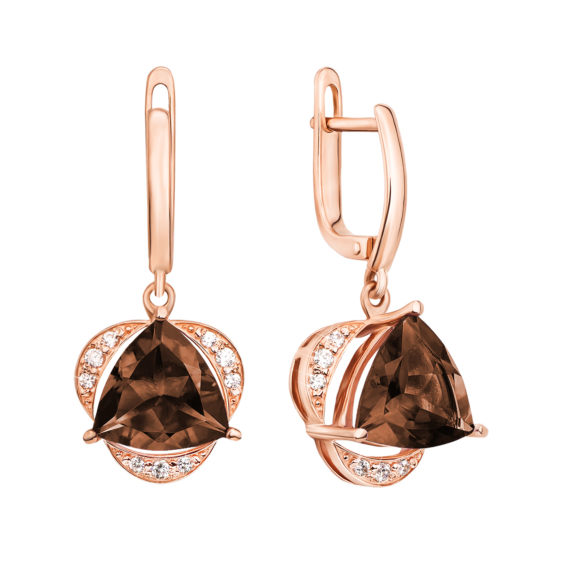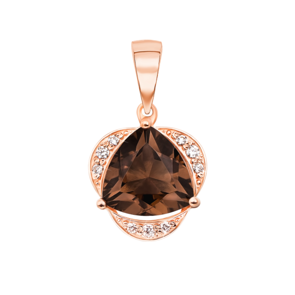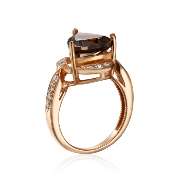 Каблучка з червоного золота 585 проби з раухтопазом і фіанітами