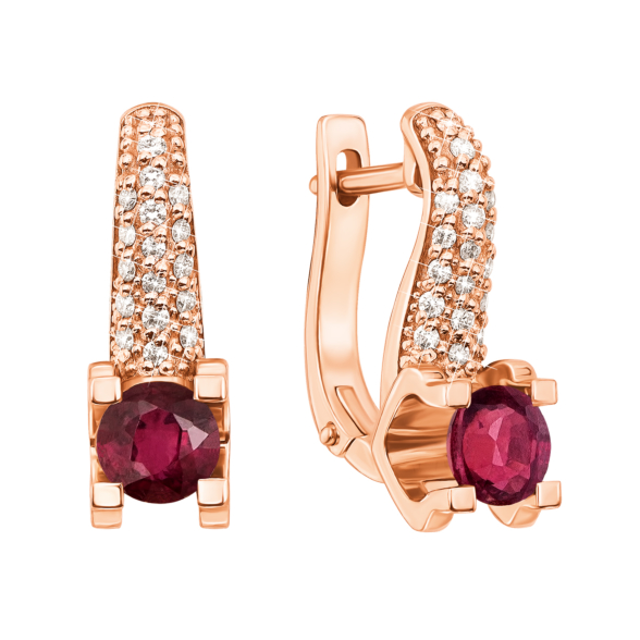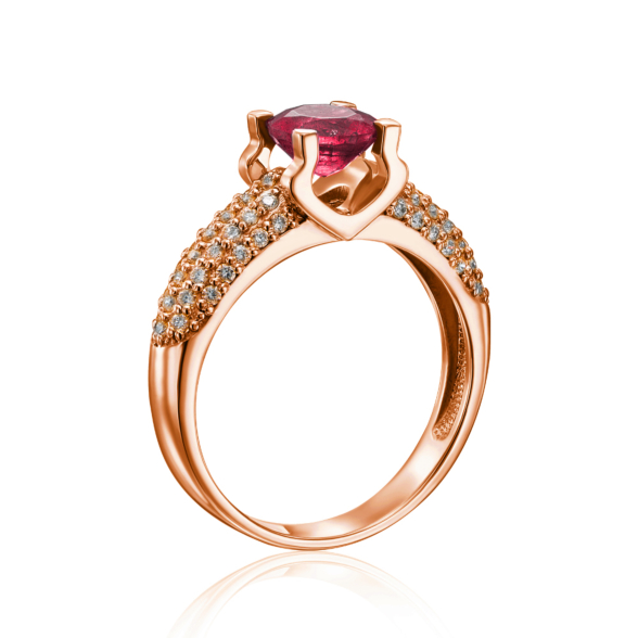 Каблучка з червоного золота 585 проби з рубіном і діамантами.