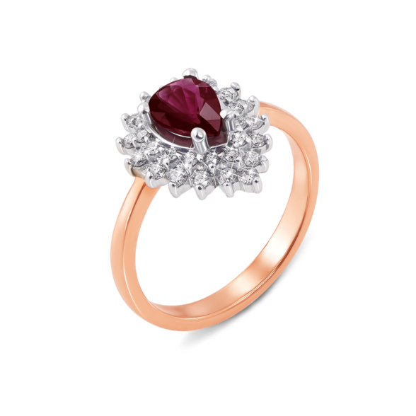Каблучка з червоного золота 585 проби з рубіном і діамантами