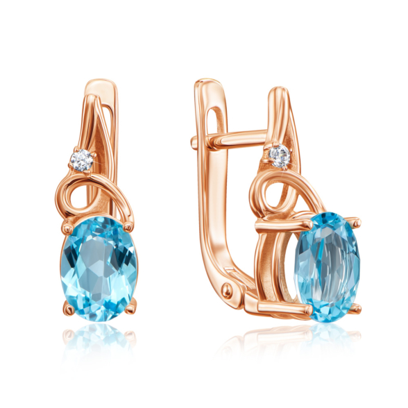 Каблучка з червоного золота 585 проби з топазом swiss і фіанітами