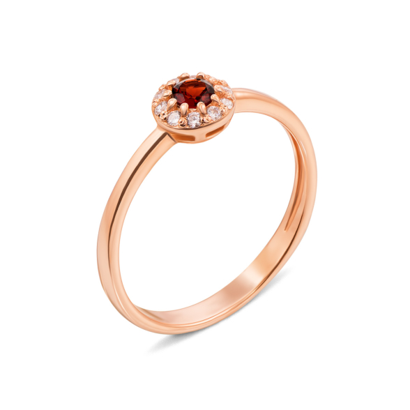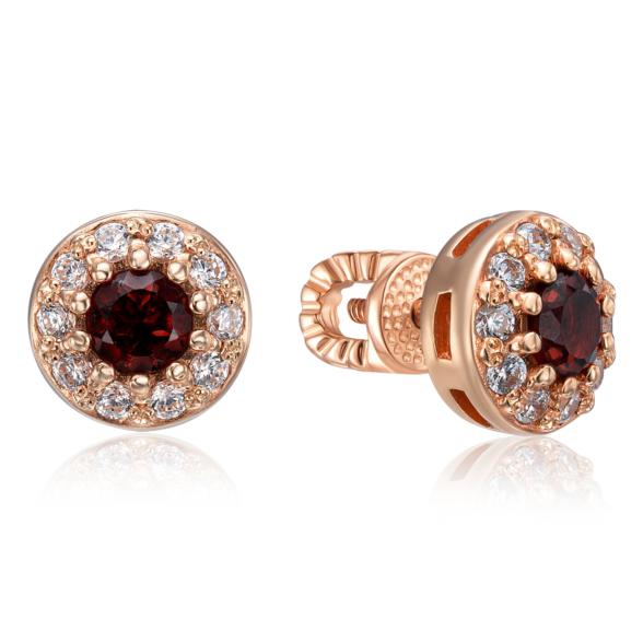 Пусети з червоного золота 585 проби з гранатом і фіанітами