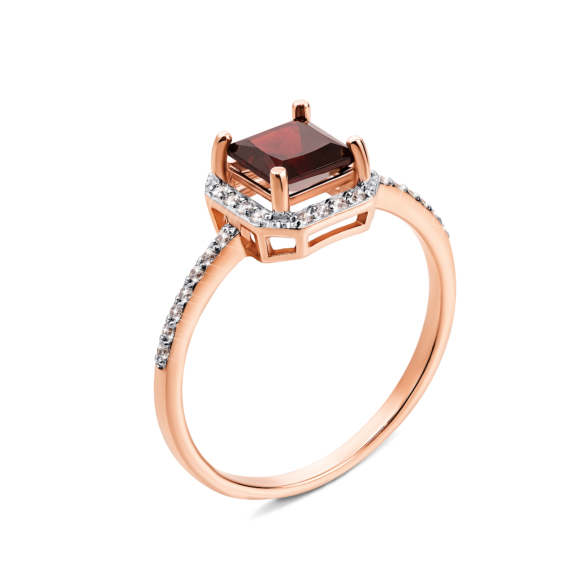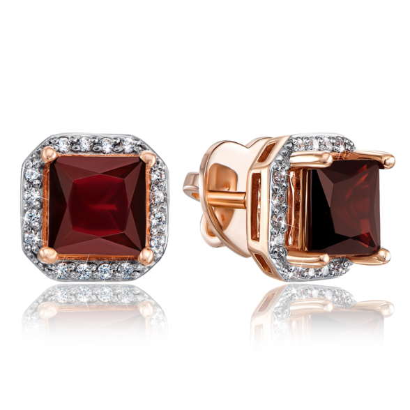 Пусети з червоного золота 585 проби з гранатом і фіанітами