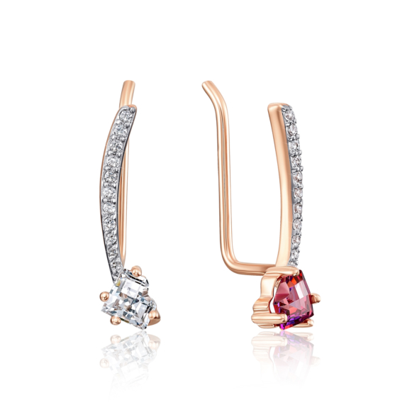 Сережки-кафи з червоного золота 585 проби з фіанітами S Zirconia.