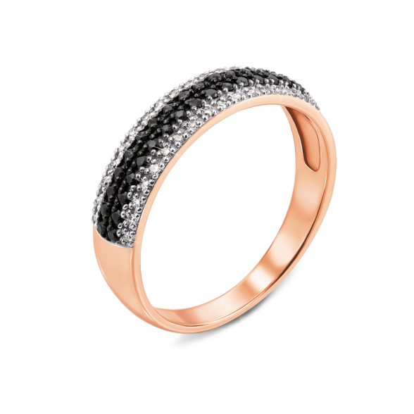 Сережки з червоного золота 585 проби з чорними і білими діамантами