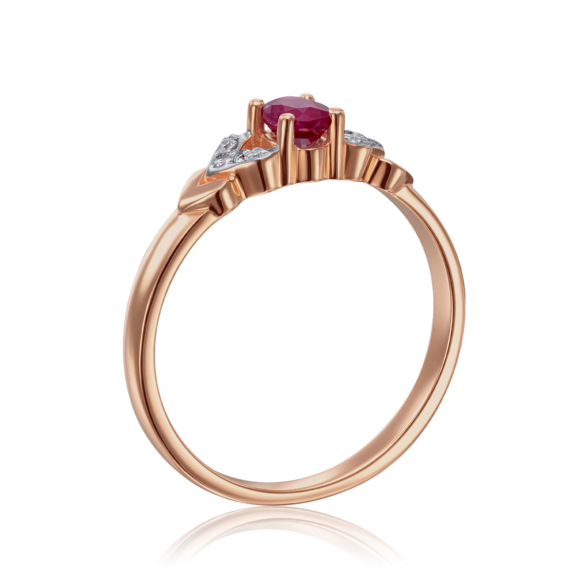 Сережки з червоного золота 585 проби з рубіном і діамантами внесуть свіжість і вишуканість у будь-який жіночий образ. Дорогоцінний рубін овальної огранки прекрасно поєднується з діамантами, які своїм блиском вигідно підкреслюють його глибину. Золоті лінії прикраси плавно переходять у класичний зручний англійський замок.