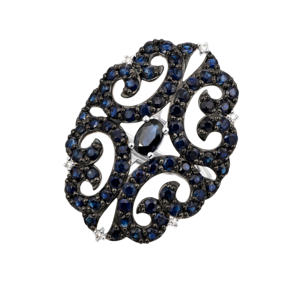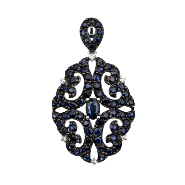 Сережки з білого золота 585 проби з діамантами і сапфірами